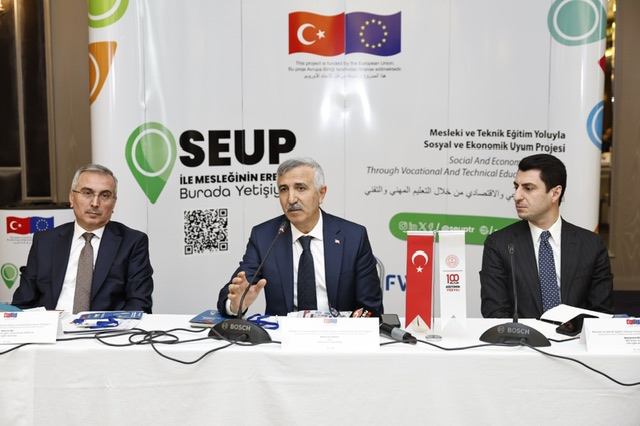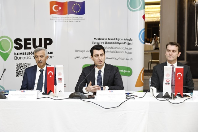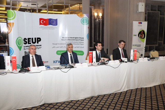 Avrupa Birliği tarafından finanse edilen, Alman Kalkınma Bankası iş birliğiyle Millî Eğitim Bakanlığı’nın yürüttüğü Mesleki ve Teknik Eğitim Yoluyla Sosyal ve Ekonomik Uyum Projesi (SEUP) kapsamında düzenlenen toplantıda, mesleki eğitimde iş birliği modelleri masaya yatırıldı. Toplantıya, Millî Eğitim Bakanlığı Bakan Yardımcısı Muhammet Bilal Macit, Kahramanmaraş Valisi Mükerrem Ünlüer, MEB Yenilik ve Eğitim Teknolojileri (YEĞİTEK) Genel Müdürü Mustafa Canlı, Mesleki ve Teknik Eğitim Genel Müdür Yardımcısı Mehmet Bal, Daire Başkanı Mustafa Günay, İl Millî Eğitim Müdürü Erhan Baydur, sektör temsilcileri, akademisyenler ve ilgili diğer paydaşlar katıldı.