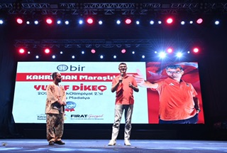 KAFUM Fuar alanında gerçekleştirdiği mini söyleşide hemşehrilerine seslenen milli sporcu Yusuf Dikeç, “Büyüdüğüm topraklara böyle gelmek ve karşılanmak beni çok mutlu etti. Herkes bizleri bağrına bastı. Atıcılığa ilk başladığım zamanlarda Kahramanmaraş’tan güreşçi çıkar gibi bir algı vardı. Artık Kahramanmaraş’tan atıcı da çıkıyor. Buralara gelebilmek için tam 24 yıl çalıştım, 5’nci olimpiyatımda madalya kazanabildim. Olimpiyatlarda ülkem adına böyle bir madalya kazandığım için çok mutluyum. Eminim Kahramanmaraş’tan nice Yusuf Dikeç’ler çıkacak. Kahramanmaraş’ın kahraman bir evladı olarak herkese çok teşekkür ediyor ve saygılarımı sunuyorum” cümlelerini kullandı.