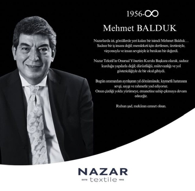 Nazar Tekstil Yönetim Kurulu Başkan Vekili Nazlı Ceylan Balduk Kurtul, şirketin kurucusu ve Kahramanmaraş’ın unutulmaz isimlerinden merhum Mehmet Balduk’un vefatının üçüncü yıl dönümünde duygusal bir paylaşım yaptı. Balduk Kurtul’un sosyal medyada yaptığı paylaşım, okuyanların yüreğine dokundu.