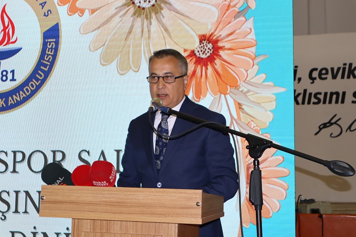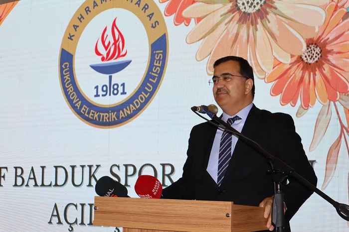 1981 yılından bu yana 43 yıldır çok güzel insanlar yetiştirmiş bu kadim okulumuz görev sürem içerisinde Duyduğum hakikaten başarılarıyla öğretmen kadrosuyla, öğrencisiyle, farkını hissettiren bir okulumuz. Ve inanıyorum ki bundan sonraki süreçte de Çukurova Elektrik Anadolu Lisesi, okunduğu şekliyle böyle, yazıldığı şekliyle de inşallah daha da ivmeyi yukarılara çıkarmak suretiyle Kahramanmaraş’ımızın sayılı okullarından birisi olduğunu devamlı bizlere hissettirecek, hatırlatacak. Sizler de bugün sıralardasınız. Yarın mezun olduğunuzda gurur duyacaksınız. Sizin içinizden biz inanıyoruz ki Kahramanmaraş’ın dışına da taşmak suretiyle ülkemize mal olacak nice isimler ortaya çıkacak. Başarılarınızla.  Geriye dönüp baktığınızda bu aidiyetini sizler için tekrar bir hatıra vesilesi olacak. Kıymetli yavrularım bugün sizlere el uzatan sizlerin akademik olarak çalışmalarınızın yanında sportif olarak da imkanlar sağlayan ve şahsında Nazlı Ceylan Balduk Kurtul Hanım’a sizler adına gönülden teşekkür ediyorum” dedi.