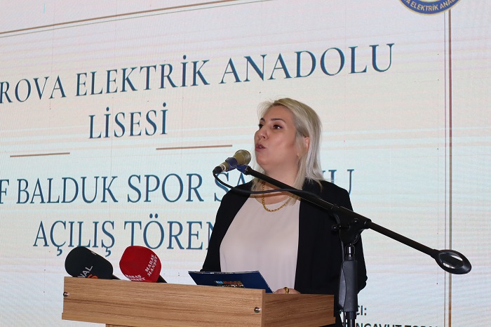 Törende konuşan Çukurova Elektrik Anadolu Lisesi Okul müdürü Vural Gök: Yeni Spor Salonu’nun açılışını gerçekleştirmek için bir araya geldik. Bu yeni tesis aktife olan bağlılığımızı ve sağlıklı yaşam tarzını teşvik etmek için önemli bir adımdır. Spor salonumuz, öğrencilerimizin, bedensel ve zihinsel sağlığını desteklemek spor yapma ve rekabet etme fırsatı sunmak için tasarlandı. Burası takım ruhunu geliştirecek, disiplin ve liderlik becerileri güçlendirilecek bir ortam sağlayacaktır. Ancak bu salon sadece bir spor salonu değildir. Aynı zamanda işin bir babanın eğitime olan aşkıdır. Kızına gönül bağıyla devleti bir sosyal sorumluluktur. Nesilden nesile geçen bir ülke sevdasıdır. Birlikte çalışmanın, dayanışmanın ve başarı giden yolda birbirimize destek olmanın bir sembolüdür burası. Başak Mire’nin yelkeni ve Arda’nın golüdür. Begüm’ün madalyası Naim’in halteridir. Bu sabah sadece bir salon değildir. Deniz Kortum’da Çağla, filelerde edadır. Kadın Sporcumuza destek, bir ufuk ve umuttur. Yüzmek için kollara gerek yokmuş diyen Süreyya, boyacıdır. Mustafa Kemal Atatürk’ün işaret ettiği sağlam kafalar ve sağlam vücutlardır. Bu salon Yaşar Erkan, bu salon, Halil Mutlu, Hamza Elif Hülyalar, Şahikalar, Aysunlar, Nurcanlardır. Adımları ve gizli okulumuzun devasa adımıdır. Bu salon sadece bedenlerimizi değil, aynı zamanda kalplerimizi de şekillenecek bir alan olacaktır. Bu salon için Balduk ailesine sonsuz teşekkür ediyorum” dedi.