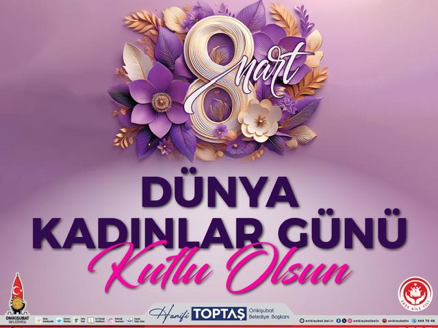 8 Mart Dünya Kadınlar Günü dolayısıyla kutlama mesajı yayımlayan Onikişubat Belediye Başkanı Hanifi Toptaş, “Emekleri, sevgi dolu yürekleri ve fedakârlıklarıyla dünyamızı güzelleştiren, daha yaşanabilir hale getiren, insanlığın umudunu yeşerten kadınlarımızın, 8 Mart Dünya Kadınlar Günü’nü tebrik ediyorum” dedi.