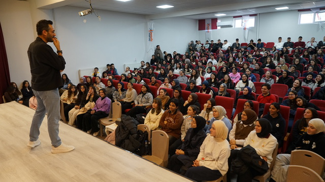 Pazarcık’taki programa gençler büyük ilgi gösterdi. Salonun tamamını dolduran öğrenciler, sınav döneminde en çok ihtiyaç duyulan motivasyon, konsantrasyon, zaman yönetimi ve çalışma planlaması konularında Gri Koç’u canlı dinleme fırsatı buldu. Müftüoğlu, öğrencilerin başarıya ulaşmasında en etkili unsurlar arasında yer alan odaklanma becerisinin geliştirilmesi, kaygı ve stres yönetimi, doğrusal olmayan öğrenme yöntemleri, hedef belirleme stratejileri ve verimli çalışma teknikleri üzerine somut ve uygulanabilir tavsiyeler aktardı.