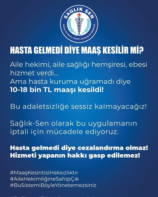 Hasta takibini düzenli yapan sağlık çalışanlarının, yalnızca vatandaşın gelmemesi nedeniyle cezalandırılmasının kabul edilemez olduğunu vurguladı.