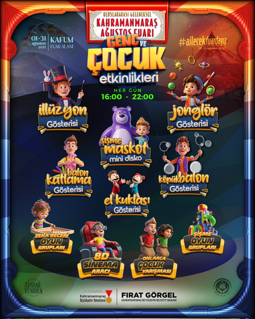 Kahramanmaraş Büyükşehir Belediyesi ev sahipliğinde düzenlenen Uluslararası Geleneksel Ağustos Fuarı, ikinci gününde de dopdolu etkinlik programıyla ziyaretçilerini ağırlamaya devam edecek. Kültür, sanat ve eğlencenin bir arada sunulduğu fuarda, 2 Ağustos Cumartesi günü de gün boyunca çeşitli aktiviteler fuar alanını renklendirecek. KAFUM Fuar Alanı’nda saat 16.00’da kapılarını misafirlerine açacak fuarın en dikkat çeken organizasyonlarından biri ise saat 21.15’te başlayacak olan özel konser olacak. Türk müziğinin sevilen gruplarından Sakiler, sahne alarak müzikseverlere unutulmaz bir gece yaşatacak. Kendilerine özgü yorumları ve sahne enerjileriyle geniş bir dinleyici kitlesine ulaşan grup; Ağırın Kaderi, Saygı Duruşu, Dünyadan Uzak, Yalanı Bırak, Canıma Minnet ve Aklımda Hep Sen gibi çok sevilen şarkılarını Kahramanmaraşlılar için seslendirecek. Büyükşehir Belediyesinden yapılan açıklamada, fuar kapsamında gün boyu düzenlenecek etkinliklerin yanı sıra Sakiler konserine de tüm vatandaşların davetli olduğu belirtildi.