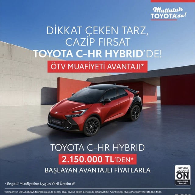 Kazancı, yaptığı açıklamada Toyota C-HR Hybrid’in 2.150.000 TL’den başlayan fiyatlar ve ÖTV muafiyeti avantajı ile satışa sunulduğunu belirterek, kampanyanın sınırlı süreli olduğunu vurguladı.