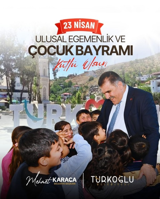 Türkoğlu Belediye Başkanı Mehmet Karaca, 23 Nisan Ulusal Egemenlik ve Çocuk Bayramı dolayısıyla bir mesaj yayımlayarak tüm çocukların bayramını kutladı. Karaca, mesajında çocukların ülkenin yarınları olduğuna vurgu yaptı ve onlara barış dolu, adil bir dünya bırakmak için çalıştıklarını belirtti.