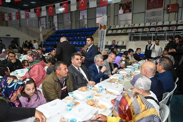 Türkoğlu Kapalı Spor Salonu’nda gerçekleşen iftar programına, Türkoğlu Belediye Başkanı Mehmet Karaca, Kahramanmaraş Büyükşehir Belediye Başkanı Fırat Görgel ve çok sayıda vatandaş katıldı.