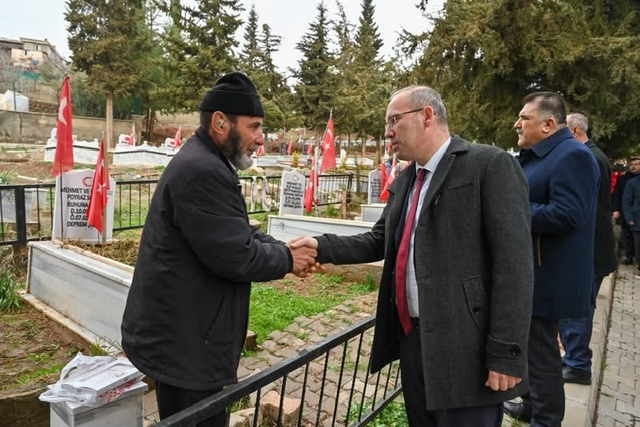 6 Şubat depremlerinin yıl dönümü dolayısıyla Türkoğlu Mezarlığı’nda gerçekleştirilen programda, depremde hayatını kaybeden vatandaşların kabirleri ziyaret edildi. Program kapsamında Kur’an-ı Kerim okunarak dualar edilirken, deprem şehitleri saygı ve hürmetle anıldı.
