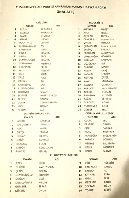 Cumhuriyet Halk Partisi (CHP) Kahramanmaraş 39. İl Kongresi tamamlandı. Mevcut İl Başkanı Ünal Ateş, 416 delegeden 250 ’sinin oyunu alarak yeniden başkan seçildi. Diğer aday Selim Sümen ise 148 oyda kaldı. Yeniden güven tazeleyen Ünal Ateş, yaptığı teşekkür konuşmasında birlik ve dayanışma vurgusu yaparak “Bu kongreyle ilgili hiçbir şey hatırlanmayacak, önemli olan bundan sonrası” ifadelerini kullandı.