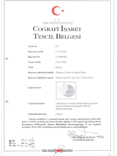 “T.C. Türk Patent Enstitüsü tarafından tescil edilen ‘Malatya Kayısısı’ coğrafi işaret belgesi, yıllardır Elbistan’ı da bu sınırlar içine alıyor.